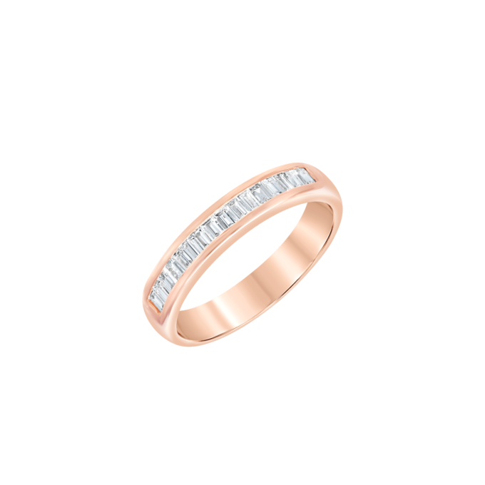 Classic half eternity band with baguette diamonds in channel setting studded in 18k rose gold