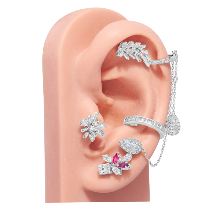 Our crushed collection is what Reem Elish jewellery is known for the most. The way this earring is designed with baguette diamonds makes this stud look like a WOW factor on your ear. Wear your ear wings to be the flyest in the room.
