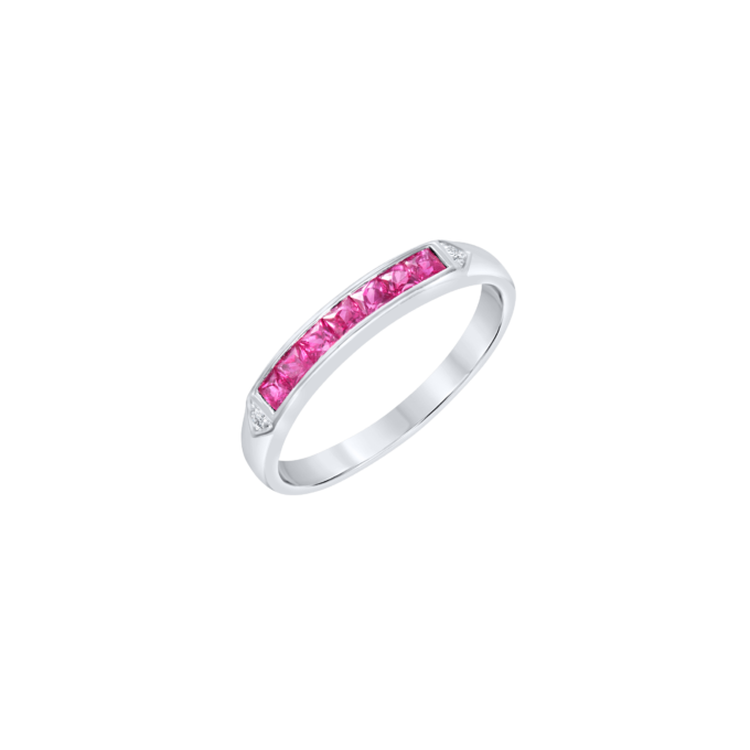 Finder Candy, RingsCute band with ruby in princess cut studded in 18k white gold
