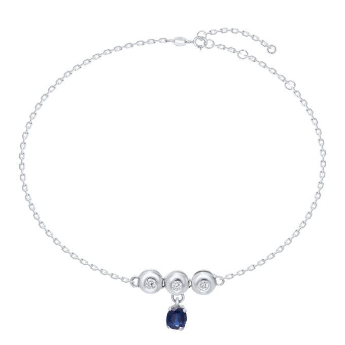 Bracelet, Floating Carat Bracelet3 brilliant round diamonds studded on white gold chain with beautiful blue sapphire studded on 18k white gold