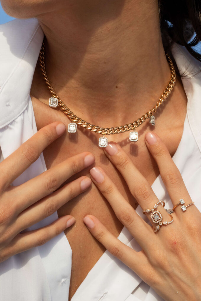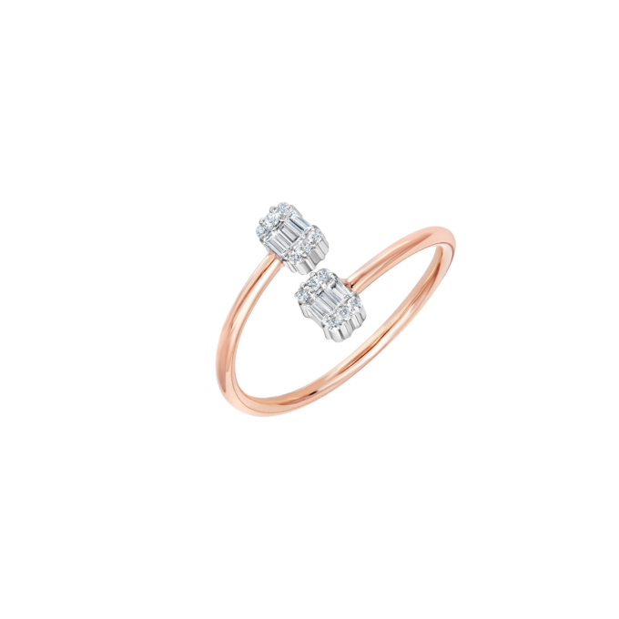Floating Carats, RingsBeautiful thin band with round and baguette cut diamonds creating the illusion of emerald cut diamond on 18k rose and white gold