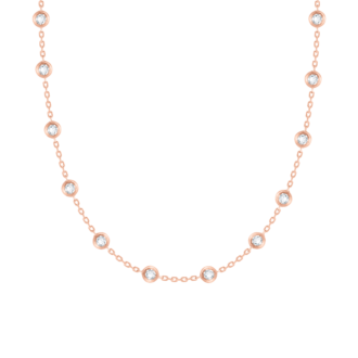 Beautiful necklace with a central emerald illusion diamond charm made with round and baguette diamonds, hanging on a rose gold chain with dangling rose gold chips on both sides. A gold clasp and a scale of two openings will make it easy to adjust the size of the necklace.