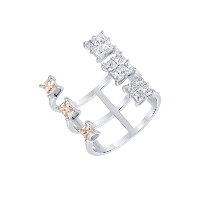 Floating Carats, RingsBeautiful ring with champagne and ice cubes created with princess cut diamonds floating on finger with 18k white gold