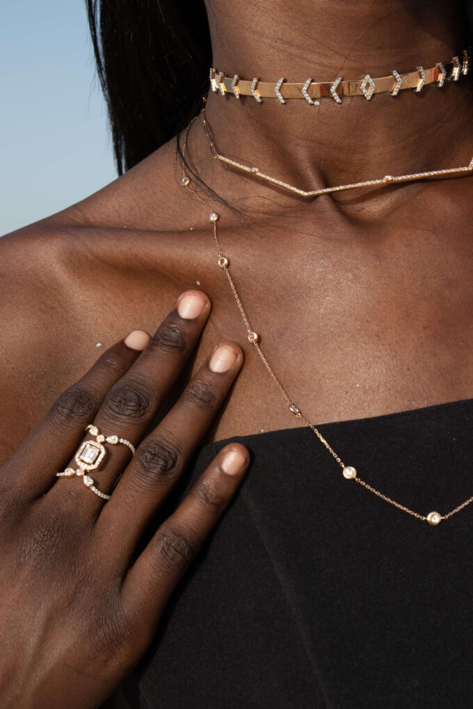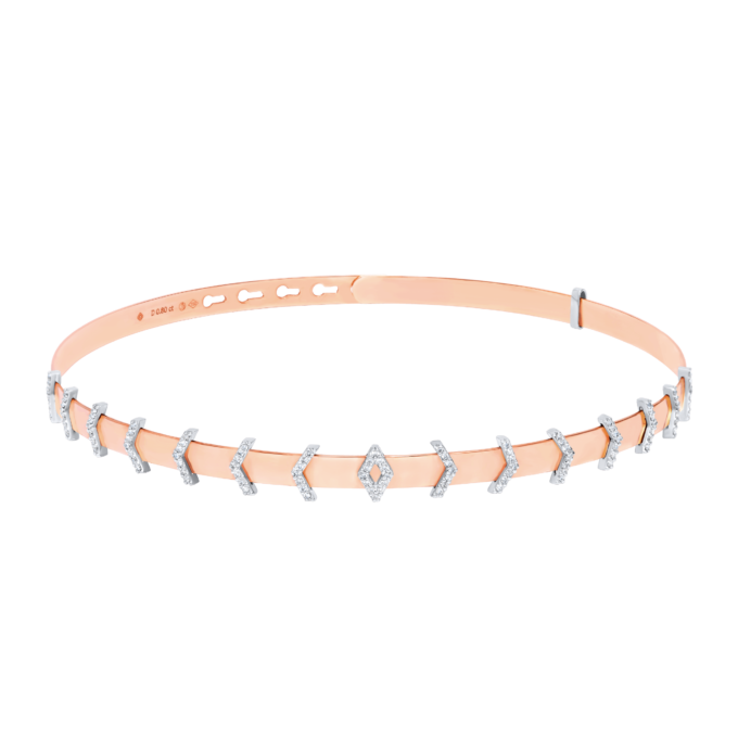 Beautiful choker necklace with round brilliant diamonds studded on 18k rose gold. The closure of this chocker is adjustable and can suit different neck sizes.