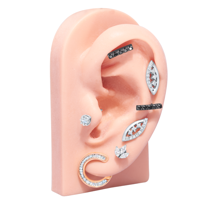 A single stud with three marquise cut diamonds set in one stud is a must have for every ear. The marquise diamonds work very well on the ear, they give the ear a very sophisticated vibe. This is sold as a single stud not as a pair.