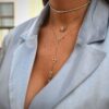 Classic tennis necklace with paper clip chain, made with solid 18 k white gold.