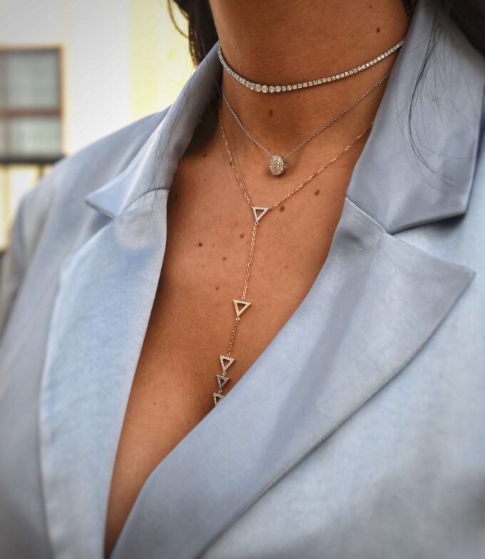 Crushed Necklace, NecklacesClassic tennis necklace with paper clip chain, made with solid 18 k white gold.